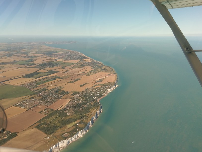 ‘Golf Charlie Foxtrot India Alpha. Bonjour Monsieur! We have your details!’ A deligthful French accent greeted Ed’s mid-channel radio call to Lille Approach. The glide path on Skydemon tipped over to the French side and the lighthouse at Cap Gris Nez was way below. We turned down along the coast, keeping out to sea, with no sense of terror at having spent the past twenty minutes over water. It all seemed a lot closer than I might have expected, helped enormously by crystal clear visibility.